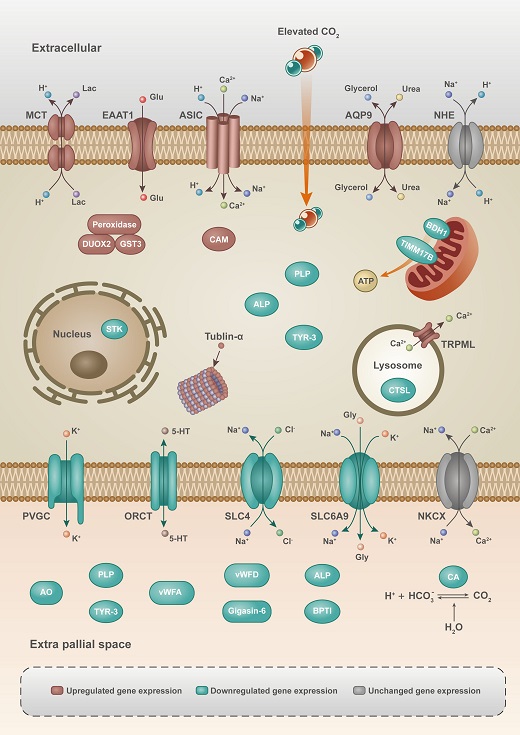 图2 鳞砗磲对海洋酸化的胞内适应性反应示意图