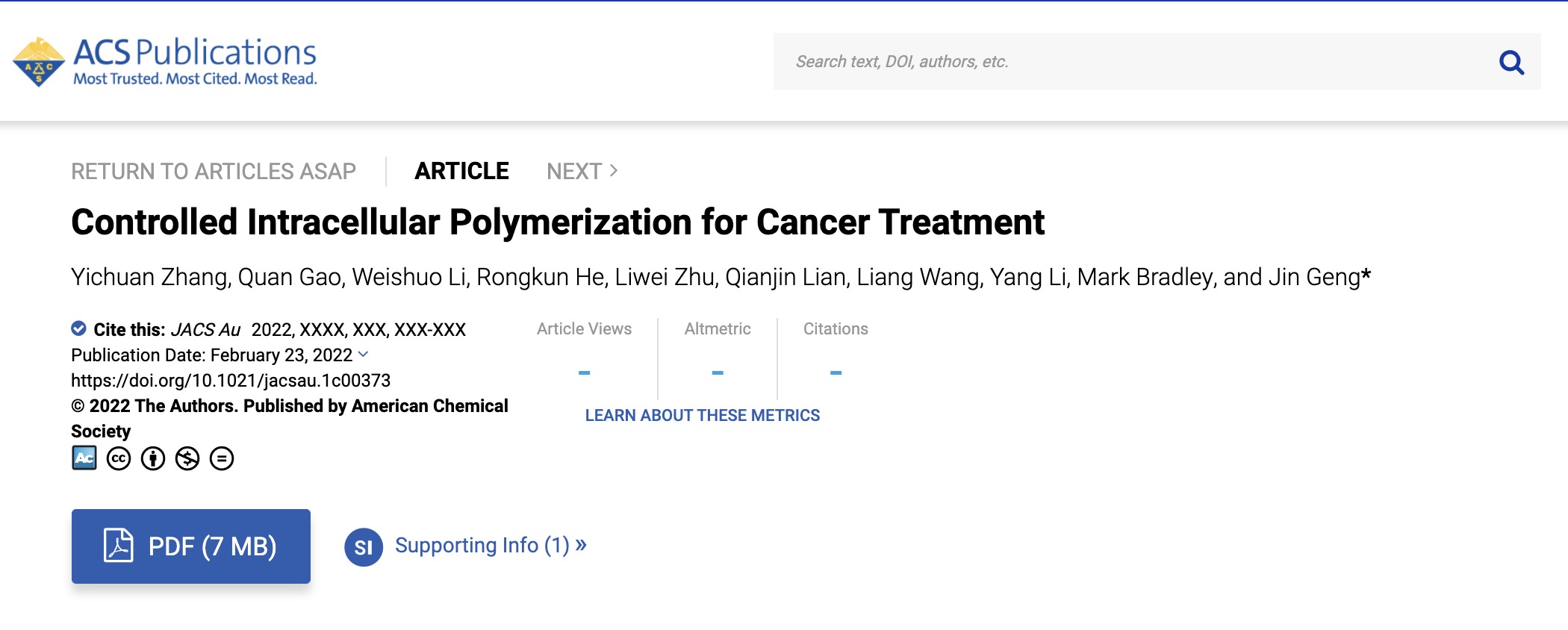 JACS au | 深圳先进院耿晋团队:细胞内原位合成人工聚合物实现肿瘤精准治疗