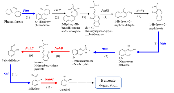 图3. PAHs降解功能微生物细胞菲代谢途径的重建