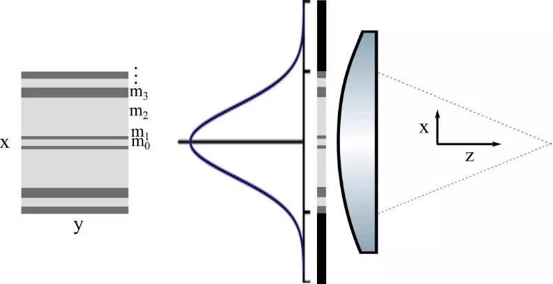 然而,光片显微术的成像性能受限于光片的光学属性,其成像分辨率受限于光片的厚度,成像视场受限于光片的宽度。而光片的厚度和宽度因光波固有的衍射属性相互制衡。薄光片支持高分辨率,但衍射发散快、有效宽度窄,限制了成像视场;厚光片衍射发散慢,支持大视场成像,但限制了分辨率。光的衍射属性导致成像分辨率和视场构成一对天然矛盾,限制了光片显微成像中生物个体的大小及表征通量。高分辨率大视场显微成像需要薄而宽的光片,这种光片具有无衍射性质。无衍射光片必然伴有旁瓣,旁瓣对成像构成离焦背景噪音。因而基于无衍射光片的显微荧光成像须控制旁瓣的影响。
