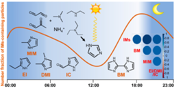 论文信息: Hu X., Guo Z., Sun W., Lian X., Fu Y., Meng H., Zhu Y., Zhang G., Wang X., Xue L., Bi X., Wang X., Peng P.a., 2022. Atmospheric Processing of Particulate Imidazole Compounds Driven by Photochemistry. Environmental Science & Technology Letters. doi:10.1021/acs.estlett.2c00029.