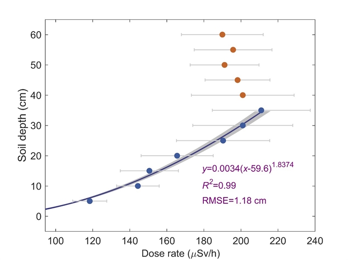 图1. 伽马辐射剂量率与土壤厚度的关系