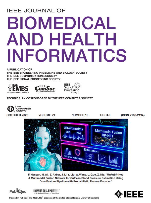 2025年10月,中国科学院深圳先进技术研究院(简称“深圳先进院”)聂泽东研究员团队在 IEEE Journal of Biomedical and Health Informatics(JBHI)发表了基于ECG与PPG的动态血压监测研究 “MuFuBP-Net: A Multimodal Fusion Network for Cuffless Blood Pressure Estimation Using Dual-Feature Pipeline With Probabilistic Feature Encoder”(Highlights文章),并以配图形式登载于 JBHI October 2025当期封面。