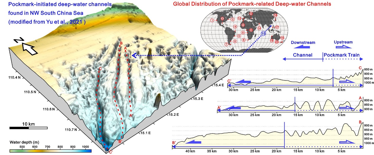 这一发现突破了传统认识,表明海底水道的形成并不一定依赖高能量流体事件。即便是中等强度的浊流,也能“借势而行”,利用先存麻坑地貌在相对低能量的环境下开启海底水道的发育过程。该成果不仅深化了对深海沉积体系演化机制的理解,也为研究全球碳循环过程及其地质记录提供了新的科学依据。