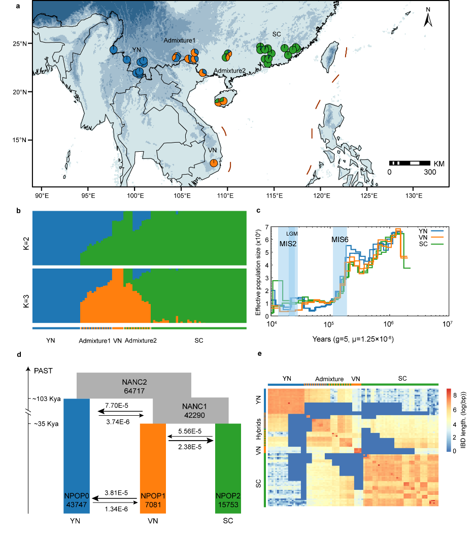 图2. 苏铁蕨的遗传结构和群体历史