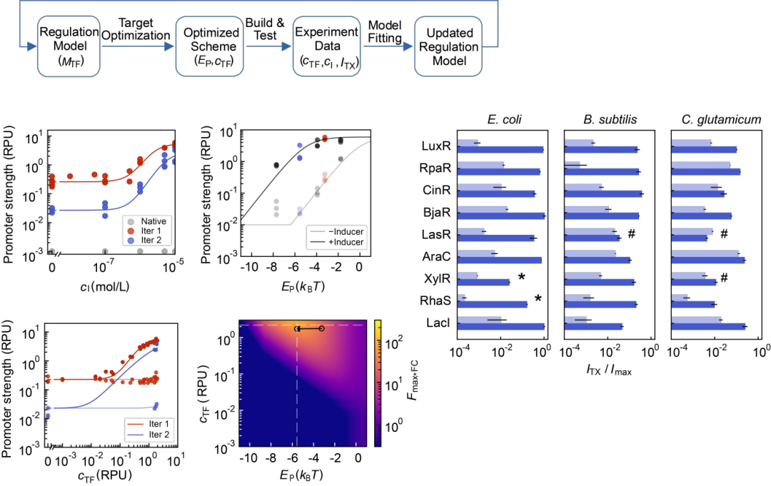诊断(解耦与定量):该研究中使用的统一热力学模型将启动子强度(EP)、转录因子结合能(EA或 ER)以及协同激活作用(EAP)等关键变量分离并参数化,使得研究人员不再需要像传统机器学习那样依赖成千上万条数据来“喂养”模型,而是通过少量的“设计-构建-测试-学习(DBTL)”循环即可快速锁定系统参数。