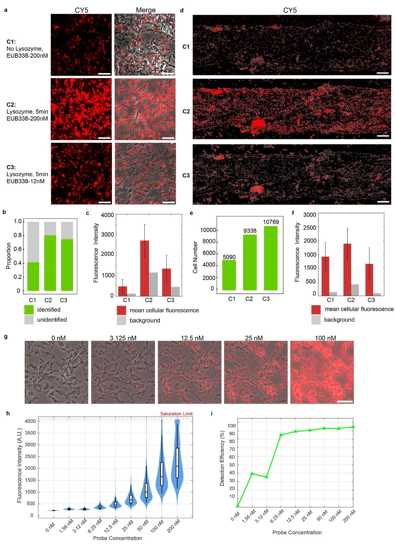 在荧光原位杂交中,样品前处理的质量直接影响了微生物的检测效率。研究团队通过系统梯度实验,评估了溶菌酶处理与杂交反应中探针使用浓度的协同作用。结果表明,在复杂的植物根际样品中,采用溶菌酶预处理并结合12 nM低浓度探针的优化方案,细菌细胞检出量较未处理组提升111%。