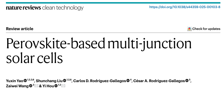 深圳先进院∣钙钛矿基多结太阳能电池(Nature Reviews Clean Technology)