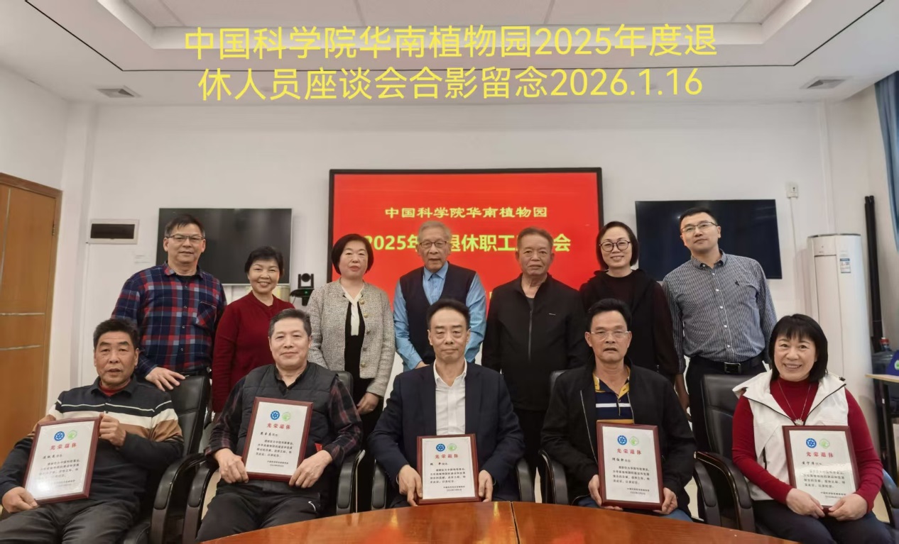 华南植物园2025年度共有10位职工光荣退休,严枫代表党政领导班子为退休职工颁发《光荣退休》纪念牌,并衷心感谢大家为国家科技事业发展,为华南植物园建设发展做出的重要贡献,祝福大家退休生活健康幸福。同时希望大家保持身心愉悦,科学安排退休生活,继续发挥专业和经验优势,弘扬正能量,一如既往关心、支持华南植物园改革创新发展。严枫表示我园将认真按照国家及中国科学院党组有关政策要求,落实好我园退休人员各项待遇,用心、用情、用力做好离退休干部的服务管理工作。