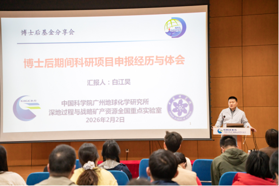 为进一步提升研究所博士后基金申报质量,做好2026年度基金申报准备工作,2月2日下午,广州地化所博士后联谊会成功举办博士后基金申报专题讲座。会议邀请科技与平台处处长田辉研究员以及白江昊副研究员分享基金申报经验。讲座由人事教育处副处长曾令君主持,在站博士后及研究生等70余人参加。