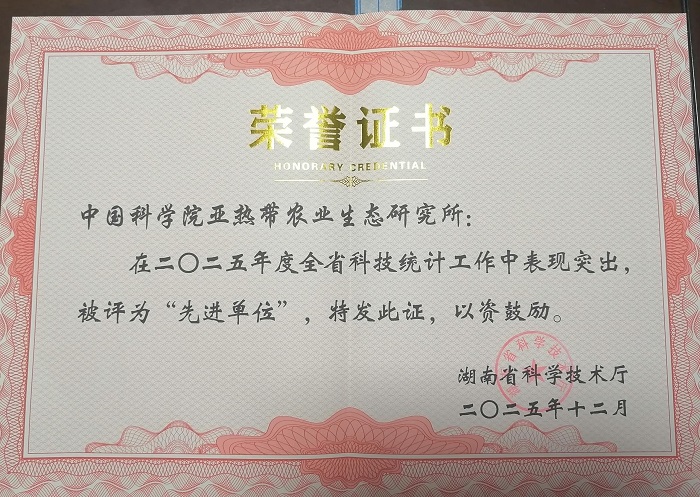 12月12日,全省高质量发展综合绩效评价科技指标专题培训暨2025年度全省科技统计工作会议在长沙举行。会议表彰2025年度全省科技统计工作成绩突出26家单位,亚热带生态研究所荣获湖南省科学技术厅2025年度全省科技统计工作先进单位荣誉称号。