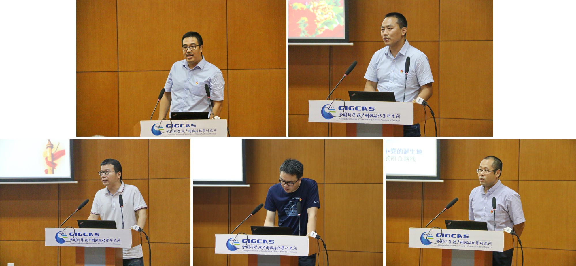 培训会上特别安排了有机室党支部书记田辉,同位素室党支部书记马林,成矿室党支部书记陈华勇,边缘海室党支部书记刘海泉和职能管理与公共支撑部门党支部书记陈智强分别汇报了2020年上半年党支部党建工作开展情况,重点汇报了“基层组织建设年”活动落实情况。