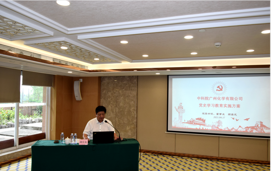 会上,广州化学党委书记、董事长胡美龙对广州化学开展党史学习教育要研读的四本书和做好的十一件事等工作进行了详细的部署。