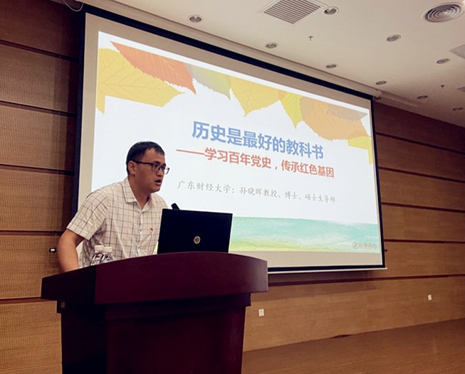 广东财经大学马克思主义学院孙晓晖教授受邀作专题辅导报告。孙晓晖以《历史是最好的教科书——学习百年党史,传承红色基因》为题,从“三个必然要求”着手深刻阐述了党史学习的重要意义,全面系统、生动形象地论述了“哪里来”“是什么”“怎么做”三个需要每名共产党员深刻思考的问题。报告获得参会党员的广泛好评,纷纷表示收获颇丰、感悟颇多,对中国共产党党史有了更加深刻的认识和理解,对中国共产党的伟大成就、光荣传统和历史经验有了更加清晰的认识,更加坚定了以学党史深化悟思想,以悟思想促进办实事,以办实事推动开新局,以党史学习教育的良好成效庆祝党的百年华诞。