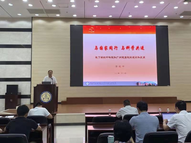 7月29日上午,中国科学院广州生物医药与健康研究院党史学习教育领导小组邀请研究院原党委书记黄建冲同志作题为《与国家同行 与科学共进》党课报告。广州健康院副院长李尹雄主持会议,广州健康院全体党员、处级以上领导干部和师生员工参加了报告会。