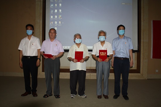 大会在雄壮的国歌声中拉开序幕,党员首先向抗击疫情牺牲烈士和逝世同胞默哀。随后进行了新党员入党宣誓、宣读了《关于颁发荣誉证书的通知》。党委书记/副主任魏平、园主任任海为周治国、梁国霖、龚义福等老同志颁发荣誉证书。