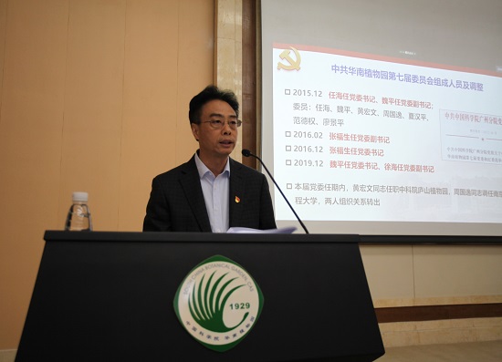 大会在雄壮的国歌声中拉开序幕。党委书记魏平同志作第七届党委工作报告(含党费收缴管理和使用情况报告),党委副书记、纪委书记徐海同志作纪委工作报告。会议还宣读了《中共中国科学院广州分院直属机关委员会关于华南植物园第八届党委纪委委员候选人预备人选的批复》《大会选举办法》(草案),介绍了候选人预备人选简况。