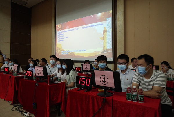 比赛设共答题、必答题、抢答题、风险题等环节,既拼知识储备和团队协作,也考验选题策略和答题速度。由于出现并列分数,还进行了附加赛。党委书记/副主任魏平、党委副书记/纪委书记徐海,及党委办公室主任范德权分别为获得一等奖、二等奖、三等奖的参赛队伍进行了颁奖。激励的角逐也紧紧拉近了观众的心,现场气氛热烈。观众认为,这既是一场比赛,也是一次别开生面的党性教育。