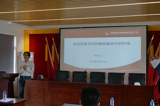 刘民义作《谈谈支部书记在廉政建设中的作用》专题报告,强调党支部在教育、管理、监督党员中发挥重要作用,党支部书记在党风廉政建设和“一岗双责”落实中处于关键位置。要求加强管理、教育以及求真务实的创新文化建设,教育党员干部严守党纪国法,营造风清气正的科研环境。