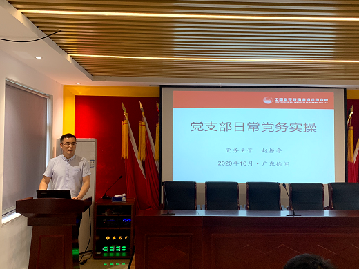 党政办公室党务主管赵振鲁作了党支部日常党务实操工作讲解,包括党费收缴、使用和管理,党员组织关系转接,发展党员三方面内容。