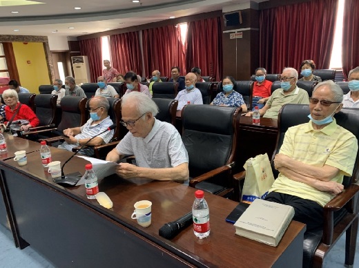 会上,赵焕庭、宋朝景、刘韶、王汉奎老同志分别作《响应党的号召向科学进军-谈南海海洋研究对南海海洋认知和社会主义建设大有可为》《听党的话,跟着党走,脚踏南海》《伟大光荣正确的共产党》《建党百年赞辉煌,浩浩青史留千秋》精彩报告。会议气氛活跃,与会老同志争先发言表达自己对党和国家的深切情怀。100年的风风雨雨,100年的励精图治,没有共产党就没有新中国,大家一致认为要铭记党,拥护党,听党的话,跟党走,让火红的党旗永远飘扬。