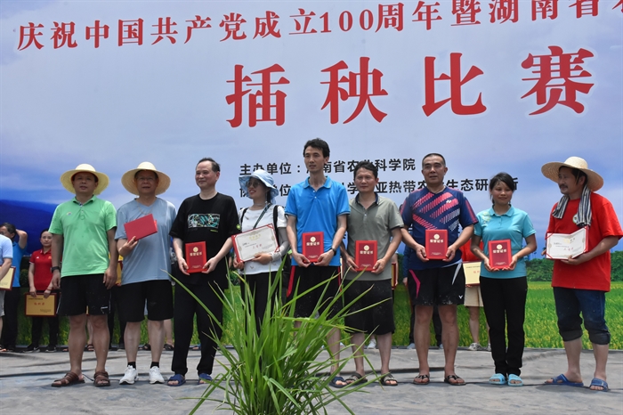 6月8日,为传承好农耕文化,致力于乡村振兴,进一步弘扬劳动精神、劳模精神和工匠精神,中国科学院亚热带农业生态研究所与湖南省农业科学院联合举办的“庆祝中国共产党成立100周年”插秧比赛在长沙县路口镇明月村的隆平稻作公园举行。