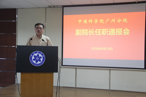 受中科院党组的委托,陈广浩宣读了中科院党组的任职决定,谢昌龙任广州分院副院长、分党组成员。