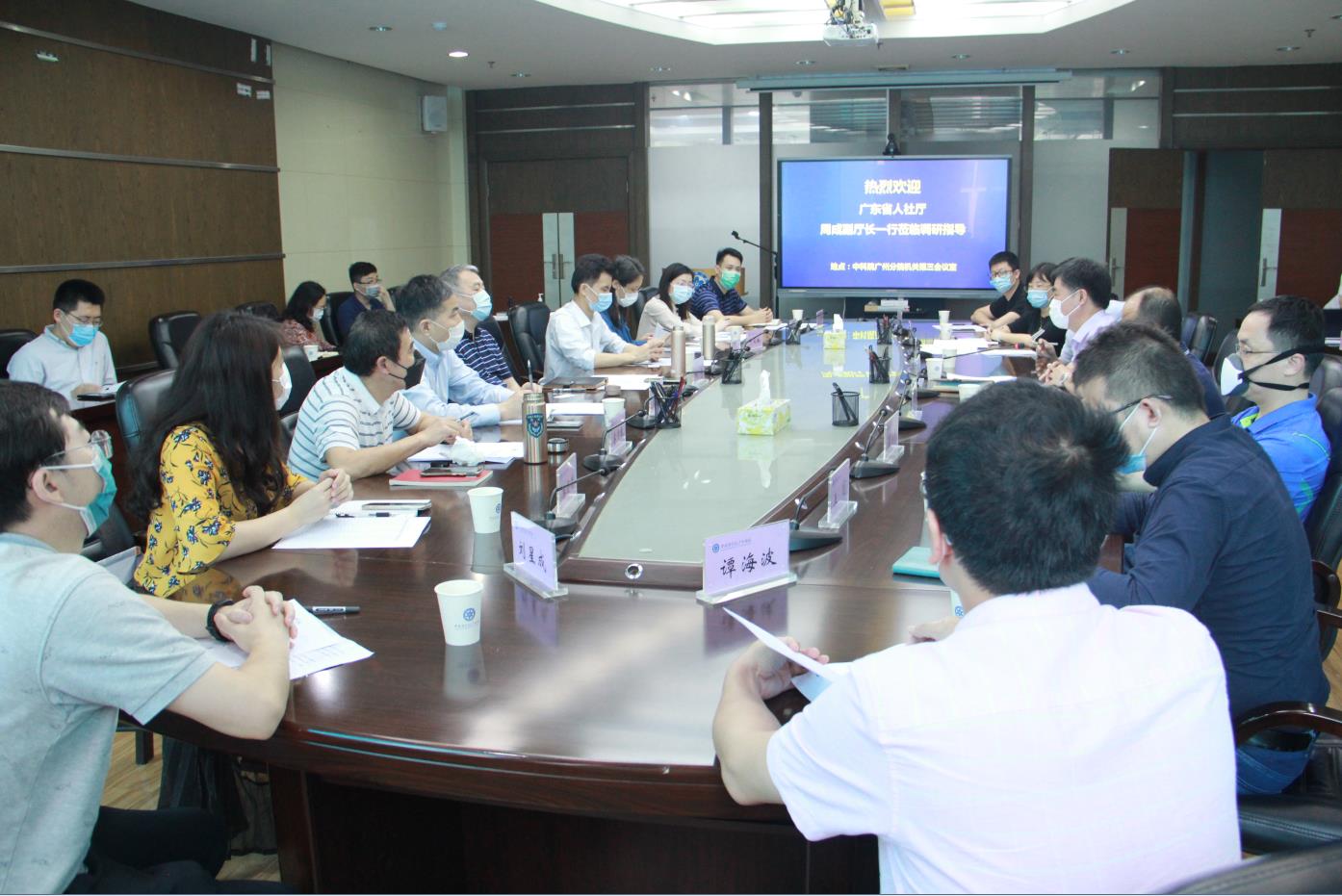 4月21日,广东省人社厅党组成员、副厅长周成率领人力资源市场处、人才开发处、人才服务局等部门一行8人到中科院广州分院就高层次人才服务工作开展调研。广州分院分党组书记、副院长陈广浩,分院系统在粤研究所人事部门负责人及青年科学家代表共18人参加座谈会。会议由陈广浩主持。
