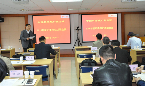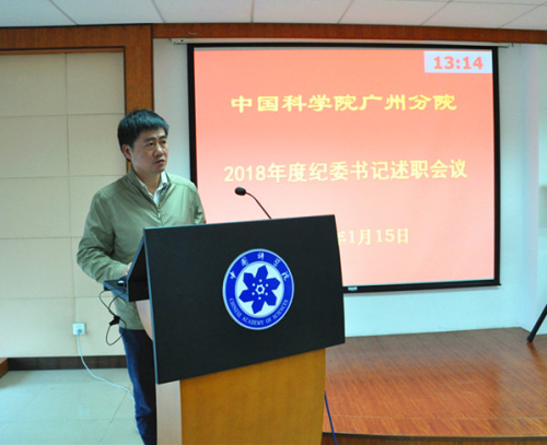 1月15日,中国科学院广州分院召开2018年度系统单位纪委书记考评(述责述廉)会议。广州分院分党组成员,分院系统各单位党委书记、纪委书记、纪委副书记、纪监审部门负责人等20余人参会。考评会由广州分院分党组副书记、纪检组组长周传忠主持。