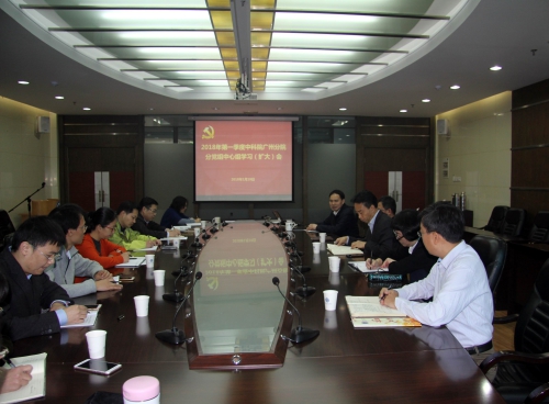 1月18日,中共中国科学院广州分院分党组召开2018年第一季度理论学习中心组(扩大)会议,专题学习习近平新时代中国特色社会主义思想。广州分院分党组成员出席会议,分院机关处(室)负责人、在职党支部负责人列席会议。会议由广州分院分党组副书记、中心组副组长周传忠主持。
