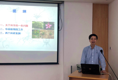 这次培训邀请中科院华南植物园主任、恢复生态学和森林生态学专家任海博士作专题报告。报告中,任海结合自己的求学经历和个人发展,详细演绎了作为科研人员的基本科学素养,做自然科学研究的逻辑思维、步骤和研究方式,以及自然与人文相互激励、相互需求的交叉发展情况。根据中科院实施“率先行动”计划的要求,任海介绍了华南植物园在推进“一三五”规划、承担重大项目情况和取得的突破性科研进展,并和大家分享了参与全球生物多样性保护、生物多样性的重要性、濒危植物繁育和回归,以及参与南海岛礁植被建设的精彩故事。任海的报告精彩、生动地诠释了中科院人唯实、求真、协力、创新的精神特质和科学、民主、爱国、奉献的优良传统,赢得了与会人员的阵阵笑声和热烈掌声。