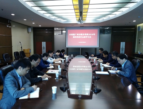 11月23日,中共中国科学院广州分院分党组召开2018年第四季度理论学习中心组(扩大)会议,专题学习习近平总书记视察广东重要讲话精神,以及中科院院长、党组书记白春礼调研广州分院指示精神。广州分院分党组成员出席会议,分院机关各部门负责人列席会议。会议由广州分院分党组副书记、学习中心组副组长周传忠主持,广州分院院长吴创之作重点发言。