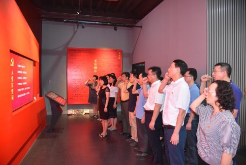 在参观第四篇章“秉承浩气越秀浓”展厅时,全体党员面向庄严的党旗,重温入党誓词,并现场参与廉洁知识问答。张世专代表全体党员郑重地在承诺墙上签名写下了广州分院机关党委名称,以示“不忘初心,牢记使命”。