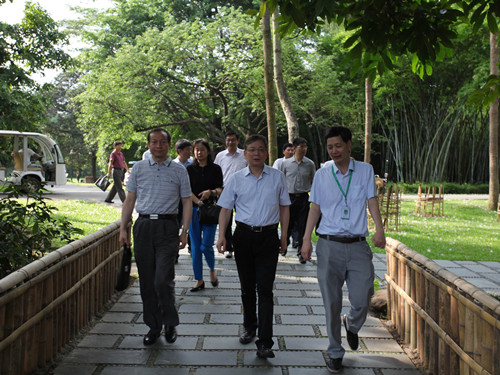 侯建国(中)一行调研华南植物园(周飞 摄)