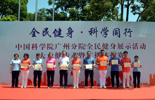 经过激烈角逐,综合健步走和广播体操成绩,广州晶体公司获得“全民健身 科学同行”广州分院全民健身展示活动金奖,广州地化所、南海海洋所获得银奖,广州电子公司、广州生物院、中科检测公司获得铜奖。华南植物园、广州晶体公司获得优秀组织奖,其余参赛单位获得团结奋进奖。活动现场还以抽签的形式抽取了10个“健步明星奖”。
